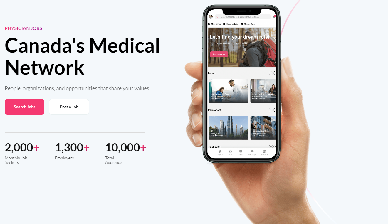 - Every job is automatically cross-posted to the largest Facebook physician groups.